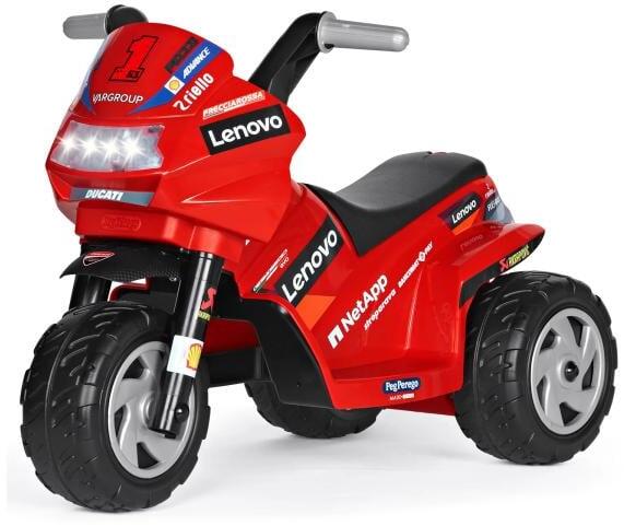 A Ducati Mini EVO elektromos tricikli nagyszerű választás a kis versenyzők számára 1 éves kortól. A három keréknek köszönhetően nagyon stabil, és kompakt méretei lehetővé teszik a használatát nemcsak kint, hanem otthon is.